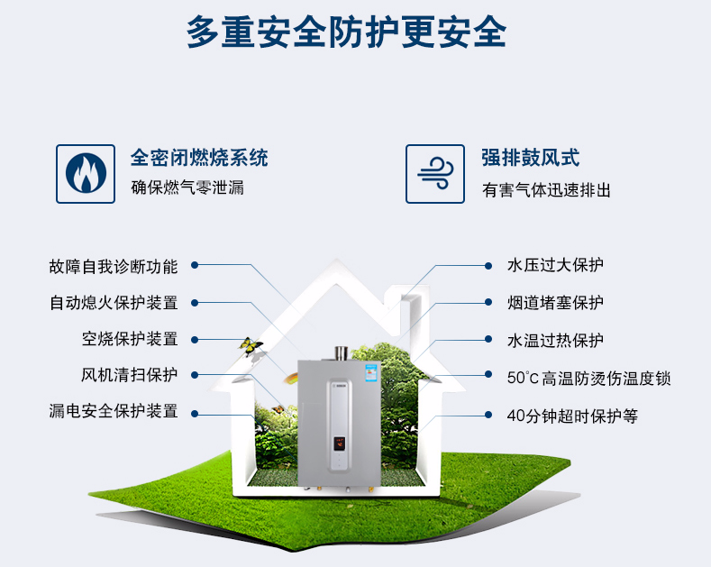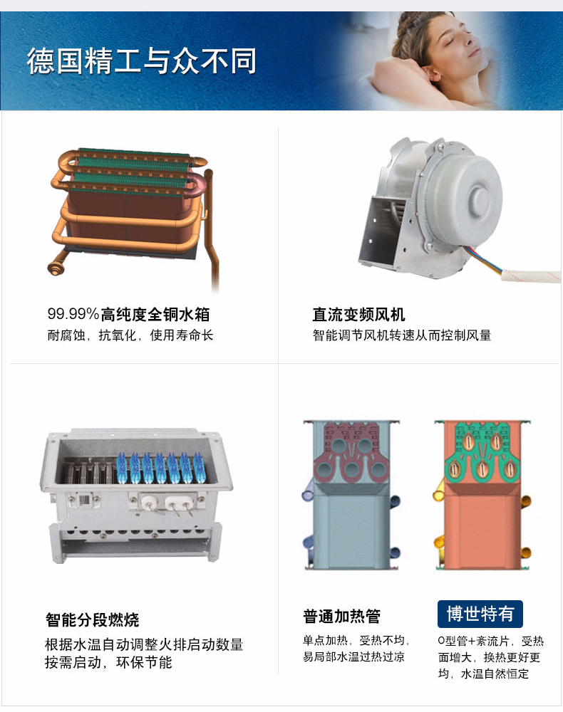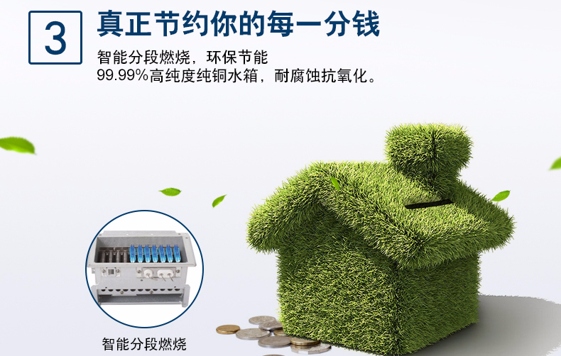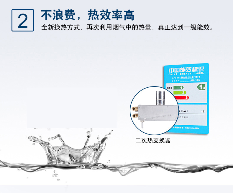 集先進的冷凝技術和智能恒溫為一體,通過二次熱交換器,充分吸收高溫煙氣中的剩余熱量(潛熱部分)來預熱冷水,再通過主熱交換器,實現熱效率達100%以上。